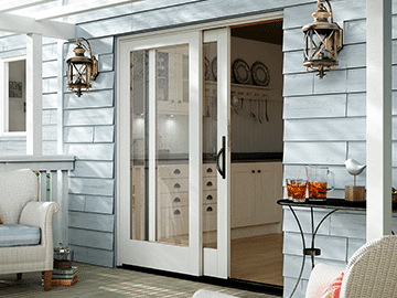 Milgard Essence Series patio doors are the perfect companion to Essence Series windows. Essence doors combine the durability of a fiberglass exterior and the beauty of a veneered wood interior in Pine or Clear Vertical Grain Douglas Fir.